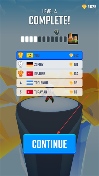 4、关卡完成后,点击CONTINUE进入下一关,继续挑战。