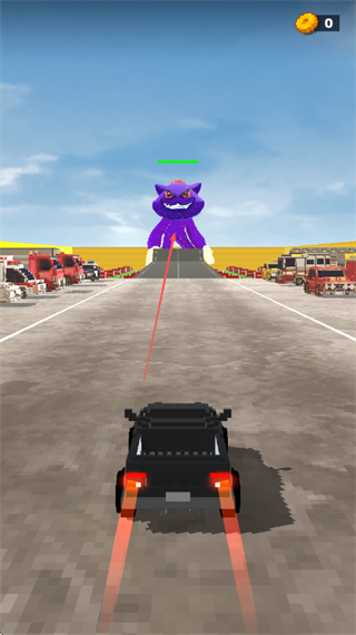 1、驾驶车辆在赛道上行驶,朝着紫色巨型怪物的方向前进。