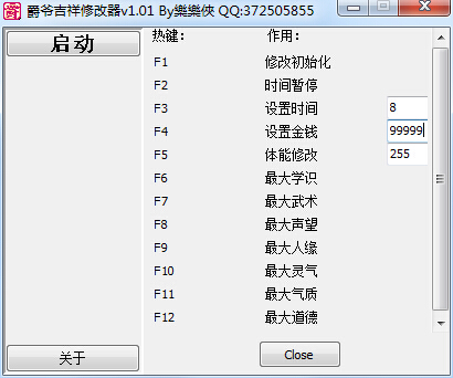爵爷吉祥修改器是游戏《爵爷吉祥》的一款作弊工具,提供体能修改、时间暂停、金钱修改、最大学识等十二项功能,帮助降低有难度,更轻松的进行游戏。赶快下载体验吧!