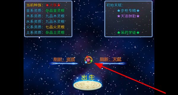 1、刷新资质和天赋,挑选契合的种族与初始天赋,点击出生,正式开启充满未知的修仙之旅。