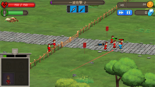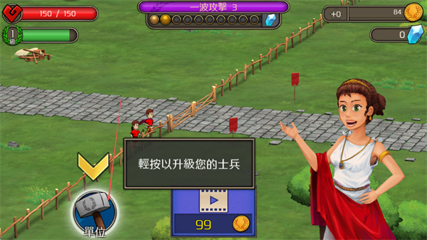 4、在一波攻击3等后续关卡中,轻按“单位”按钮升级士兵,提升其战力,应对更强的敌方攻势,保护城堡安全。