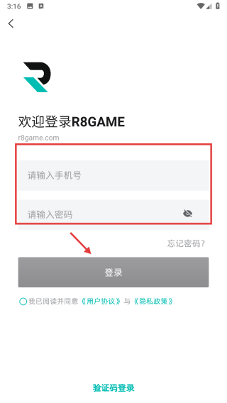 4、在账号密码登录信息填写页面,输入手机号码和密码,点击登录按钮,完成登录操作。