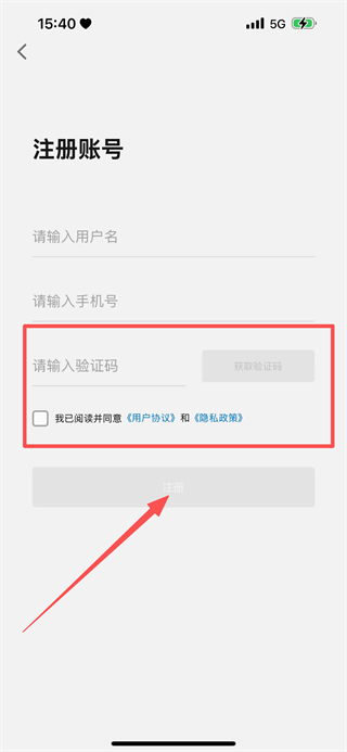 3、在注册账号页面,输入验证码,点击注册,完成账号注册操作。