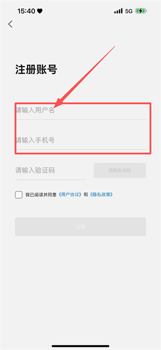 2、随后我们可以在注册账号页面,输入用户名和手机号。