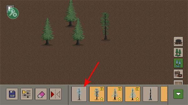 2、选择树木类型进行地图布置,地图布置是构建游戏场景的基础步骤,可营造战斗环境,提供场景支撑。