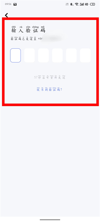 3、跳转至输入验证码页面,在输入框中,输入收到的验证码。