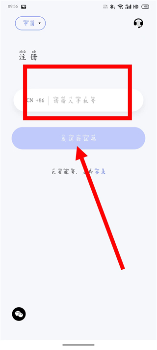 2、进入注册页面后,输入手机号,点击发送验证码。