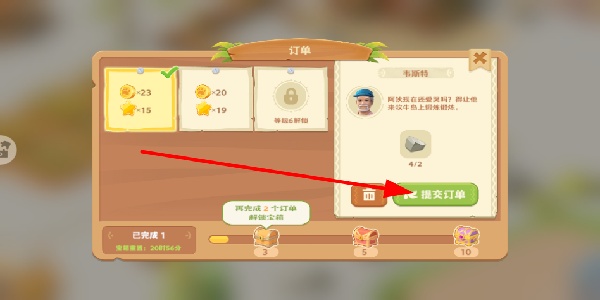 3、及时查看订单需求,准确提交符合要求的物品,顺利完成订单任务,获取丰厚的金币和经验奖励,快速提升自身等级。