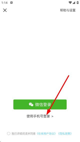 2、在登录选择页面,点击使用手机号登录,进入验证码登录页面。