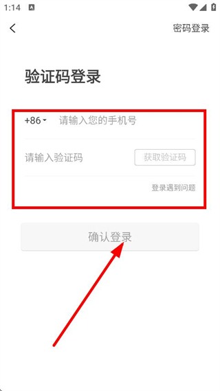 3、输入手机号,获取验证码并输入,点击确认登录,完成账号登录操作。