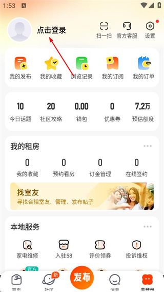 1、在58同城首页,点击右下角我的选项,进入个人页面。