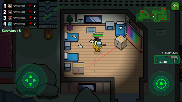 2、操控角色在房间内移动,靠近箱子获取武器资源,根据地图了解场景布局。