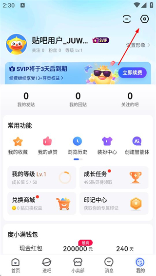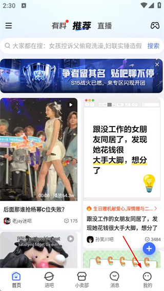 1、在百度贴吧首页,点击右下角我的选项,进入个人页面。