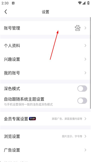 3、在设置页面,点击账号管理选项,进入账号管理页面。