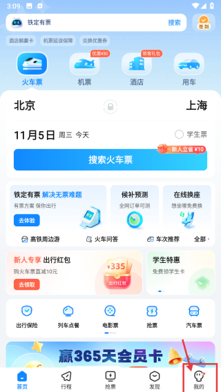 提供高铁及普通列车车票查询购买服务,支持在线退票、改签与车票预售期提醒,还能收藏常用车次,满足用户票务相关的各类需求。