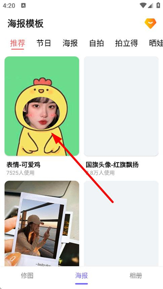 2、在海报模板页面,点击表情-可爱鸡的模板。