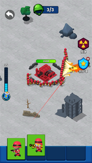 3、解锁火箭炮兵种后,部署其攻击敌方建筑,造成大范围伤害,快速推进关卡。