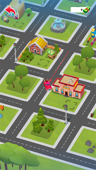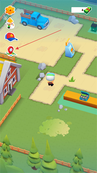 3、在小镇地图中在屏幕上进行滑动控制小车,前往带有灰色方块的建筑物进行停放。