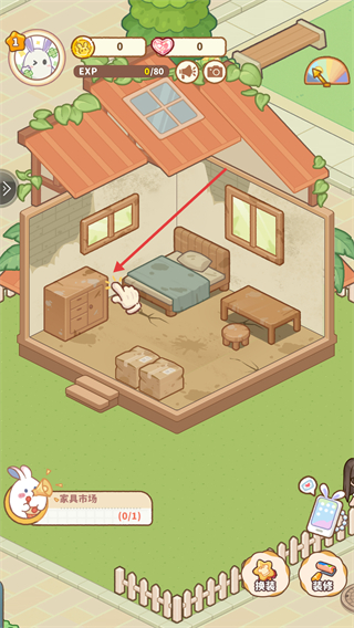 3、点击屋内的床周边区域,完成相应的整理任务。