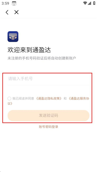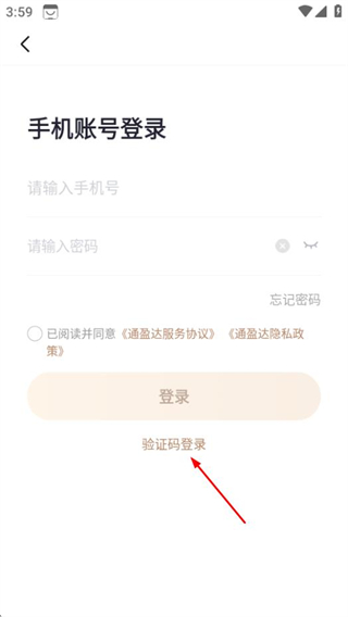 3、在验证码登录页面,输入手机号并勾选协议,点击发送验证码,进入下一步。