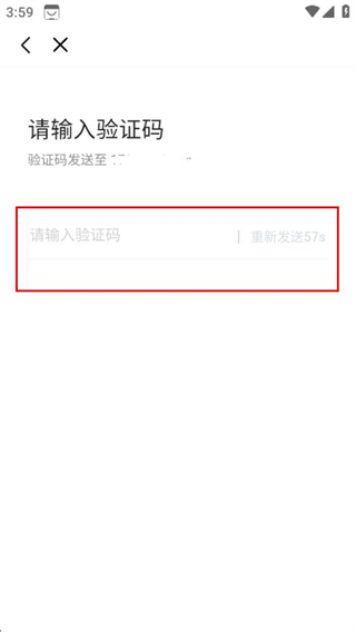 4、在验证码输入页面,输入收到的验证码,完成登录账号操作。