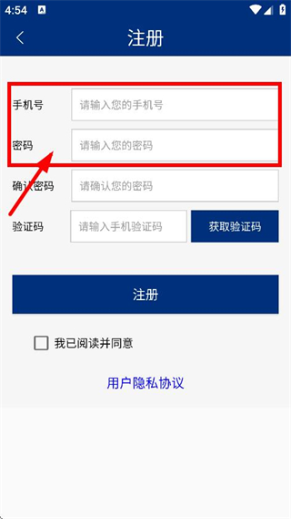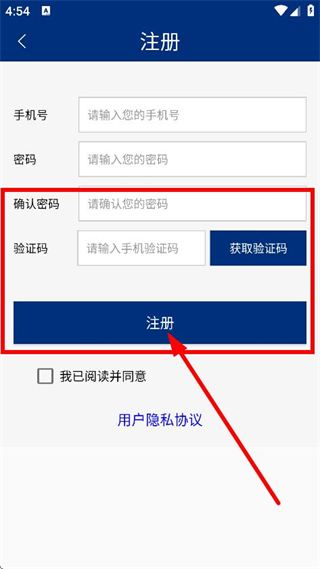 4、输入确认密码、验证码,点击注册,完成账号注册操作。