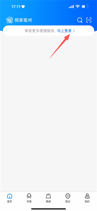 1、在我家亳州APP界面,点击马上登录,进入登录注册页面。