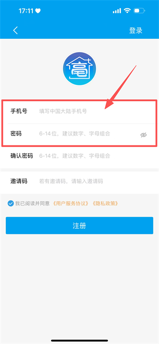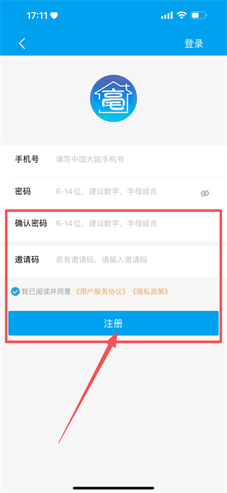 4、输入确认密码、邀请码,点击注册,完成账号注册操作。