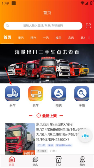 1、在挑个车首页,点击买车选项,进入车辆列表页面。