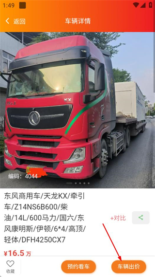 3、在车辆详情页面,点击车辆出价按钮,进入车辆出价页面。