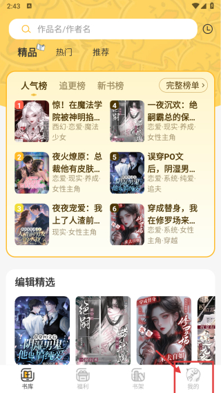 1、打开小说类APP,点击底部我的选项,进入个人中心页面。