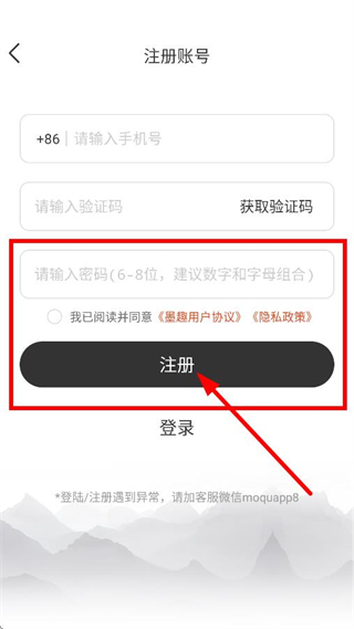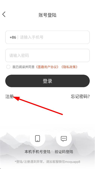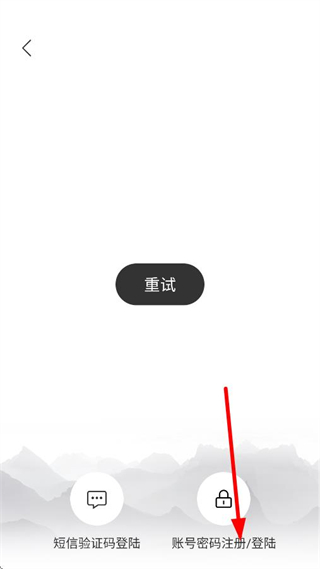 1、在登录方式选择页面,点击账号密码注册/登陆,进入账号登陆页面。