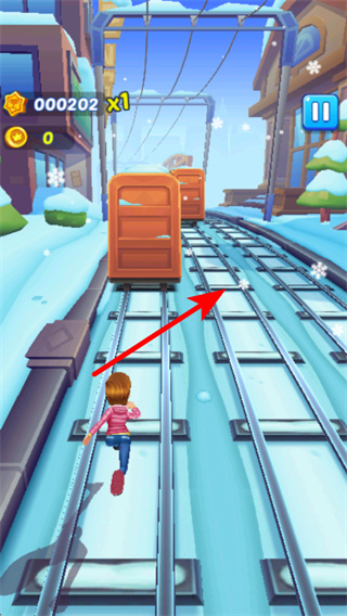 2、注意躲避前方的火车障碍,障碍躲避是生存的核心步骤,躲避后可避免被火车撞击,持续在跑酷场景中前进。