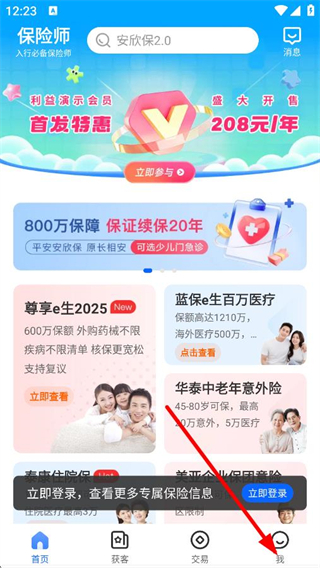 2、随后可以在首页,点击底部的我,进入登录页面。