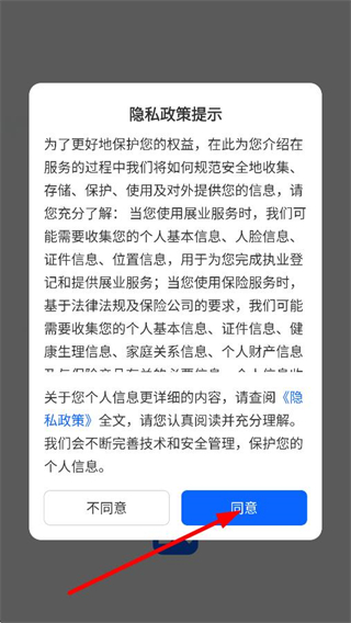 1、在隐私政策提示弹窗中,点击同意,进入首页。