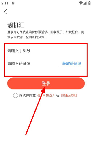 4、在登录页面,输入手机号和验证码,点击登录,完成登录操作。