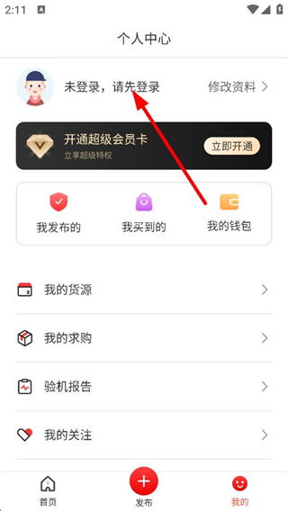 3、在个人中心页面,点击未登录,请先登录,进入登录页面。