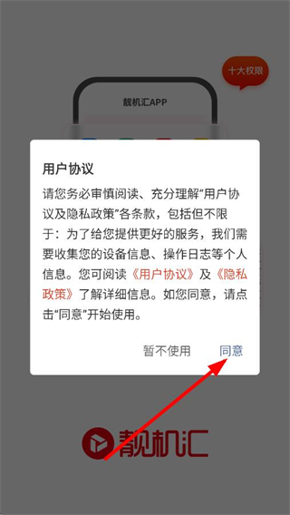 1、在用户协议弹窗中,点击同意,进入APP首页。
