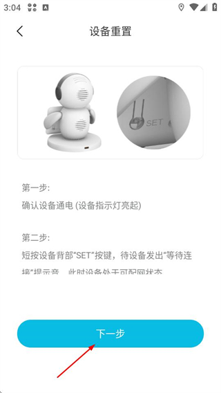 2、在添加设备选择界面选择要添加的设备类型,进入设备重置界面后点击下一步。