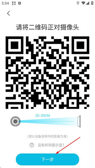 5、在设备配对界面将手机二维码对准摄像头,等待识别后点击下一步。