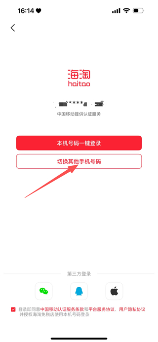 2、在点击切换其他手机号码,进入手机号登录页面。