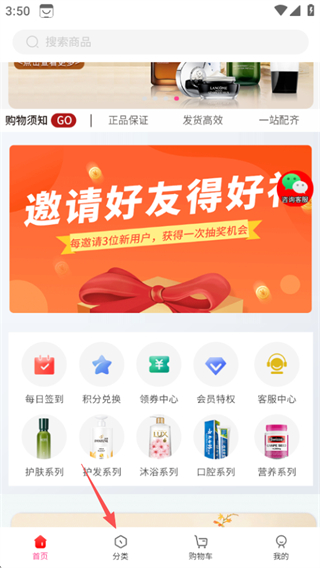1、在精致生活馆首页,点击分类选项,进入分类页面。