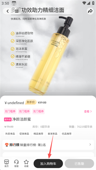 3、在商品详情页面,点击加入购物车按钮,可将该商品加入购物车。
