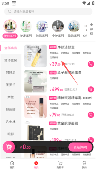 2、在分类页面,选择感兴趣的商品,进入商品详情页面。