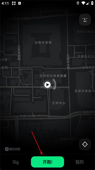 1、在地图界面点击开跑,进入跑步记录开始界面。