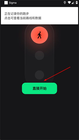 2、在跑步记录开始界面点击直接开始,进入运动中界面。