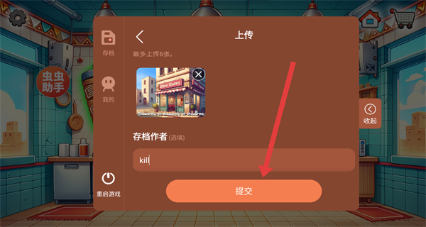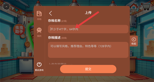 3、上传页面填写存档名称、存档描述、存档作者,并上传存档图片。