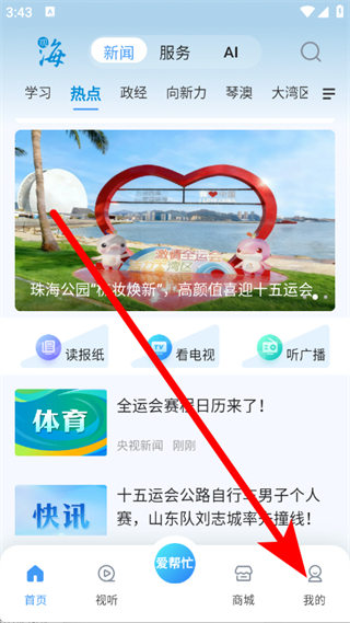 1、打开观海融媒,点击底部导航栏我的,进入个人中心页面。
