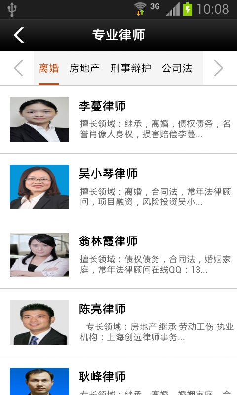 专业律师:本应用提供相关各种类型律师分类,方便客户查询购买。