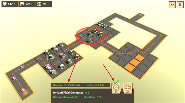 操作逻辑简单直观,只需选择炮塔并放置在合适位置,后续可通过点击快速完成升级与替换,无需复杂操作就能快速投入防御布局,轻松掌握核心玩法。